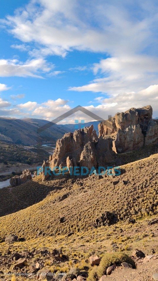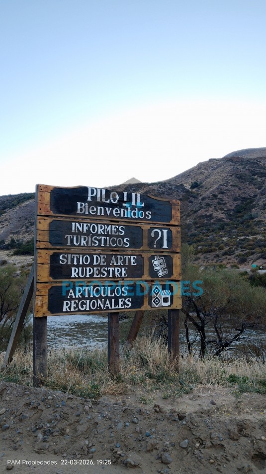 Pasando la formación de piedras con pinturas rupestres, tomando la bifurcacion hacia la derecha, encontramos a metros del Río 20.000m2 en venta.